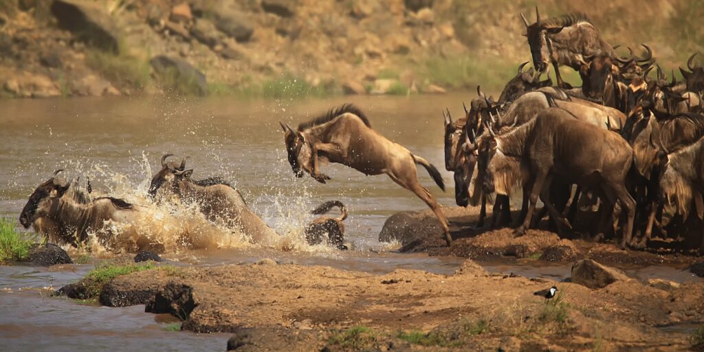 Between July and October vast herds of wildebeests and zebras surge up from the Serengeti plains in search of sustenance, creating the annual spectacle known as “The Great Migration”.