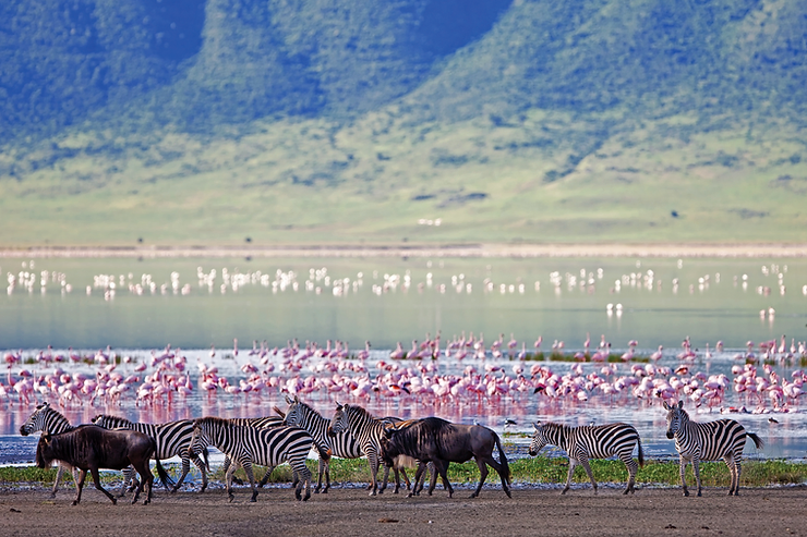 See giant-tusker elephants, black-mane lions, 6,000 wildebeest, black rhinos, cheetahs, and flamingos turning the soda lakes pink. June is a unique time to visit the Ngorongoro Conservation Area as it is the end of the “long rains” season, leaving the environment green and lush, and just before the busy high season.